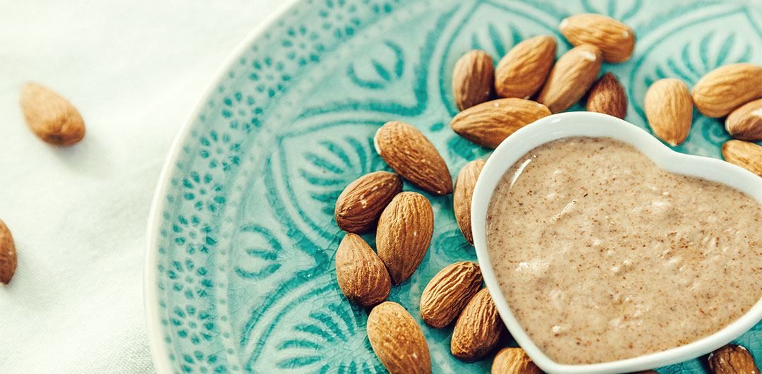 Gerade jetzt in der Weihnachtszeit finden wir Mandeln überall, aber auch sonst sollten sie in unserem Speiseplan nicht fehlen: Zum Beispiel als selbst gemachtes Mandelmus. Man braucht dazu nur Mandeln, einen Ofen, eine Küchenmaschine und in ein paar Minuten ist das Mandelmus fertig.