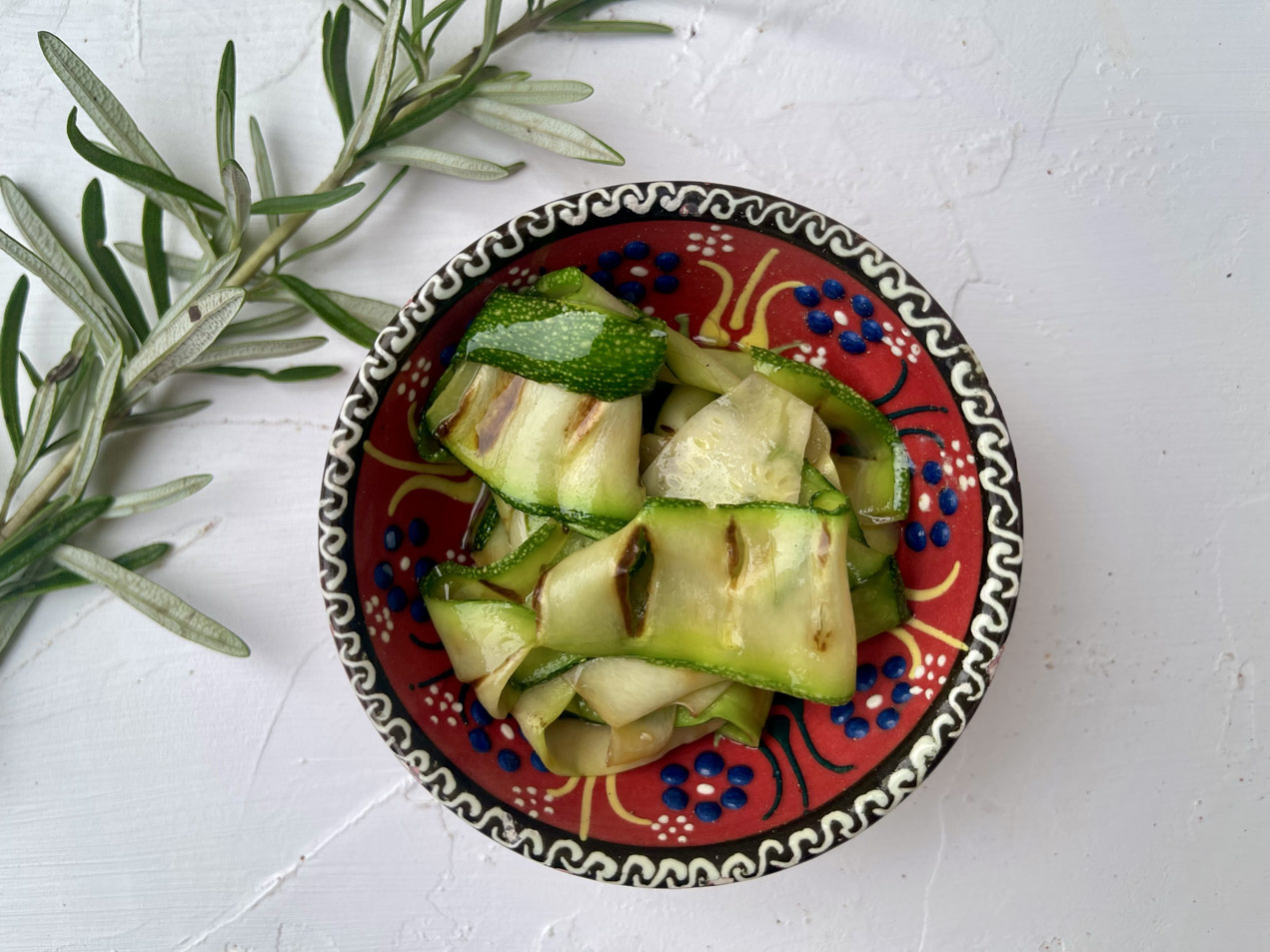 Zucchini ist manchmal etwas langweilig. Sie schmeckt oft nach nichts. Aber gerade deswegen eignet sie sich so hervorragend für diese Gericht. Denn sie soll den Geschmack der Kräuter, des Knoblauchs und vor allem des Olivenöls annehmen. Und so geht’s: