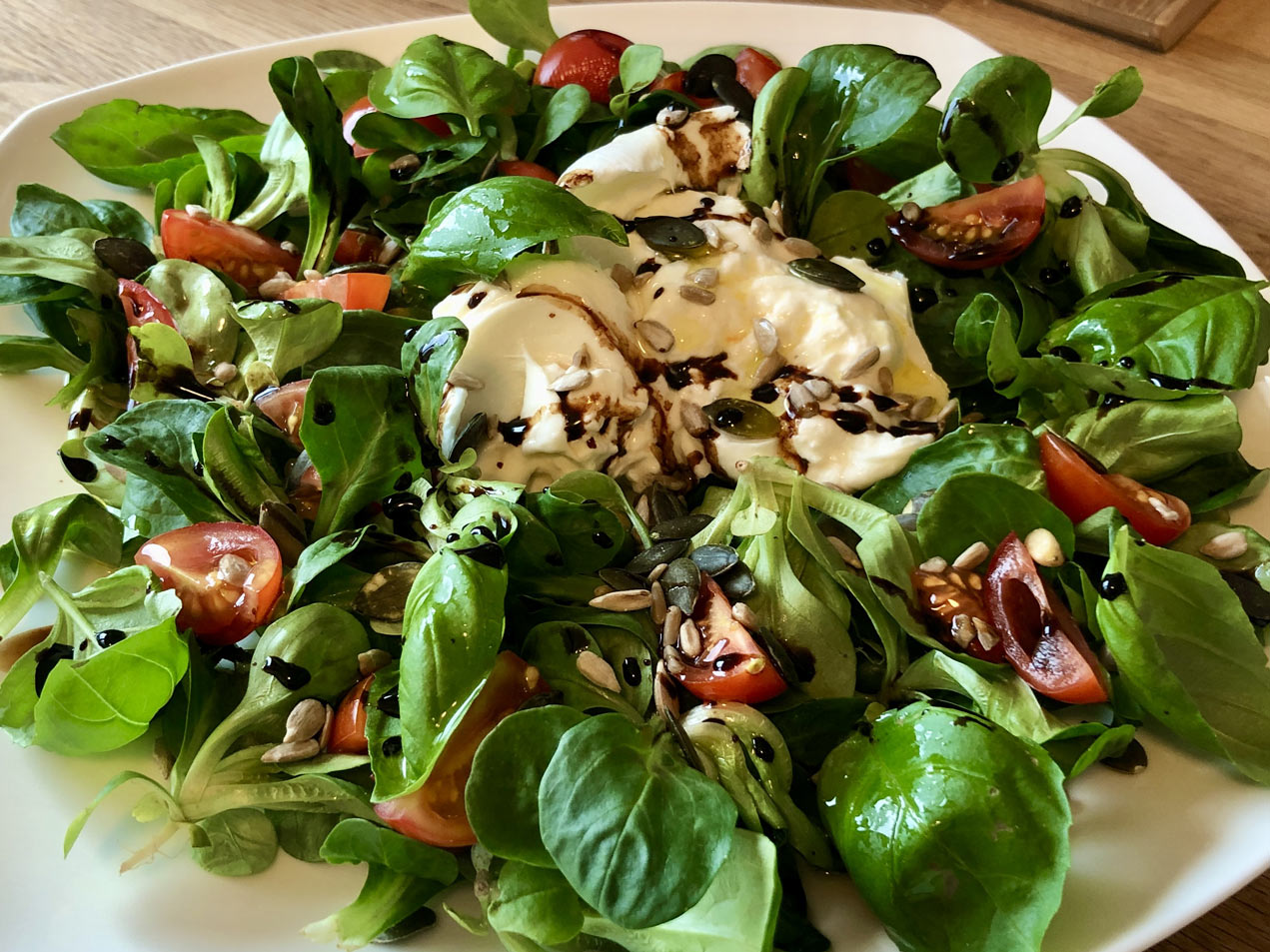 Dieses Feldsalat Rezept ist leicht, schnell und lecker. Frische Tomaten, cremiger Büffelmozzarella und ein nussiges Dressing machen den Salat zu einem echten Favoriten. Perfekt als Lunch, Beilage oder leichtes Abendessen.