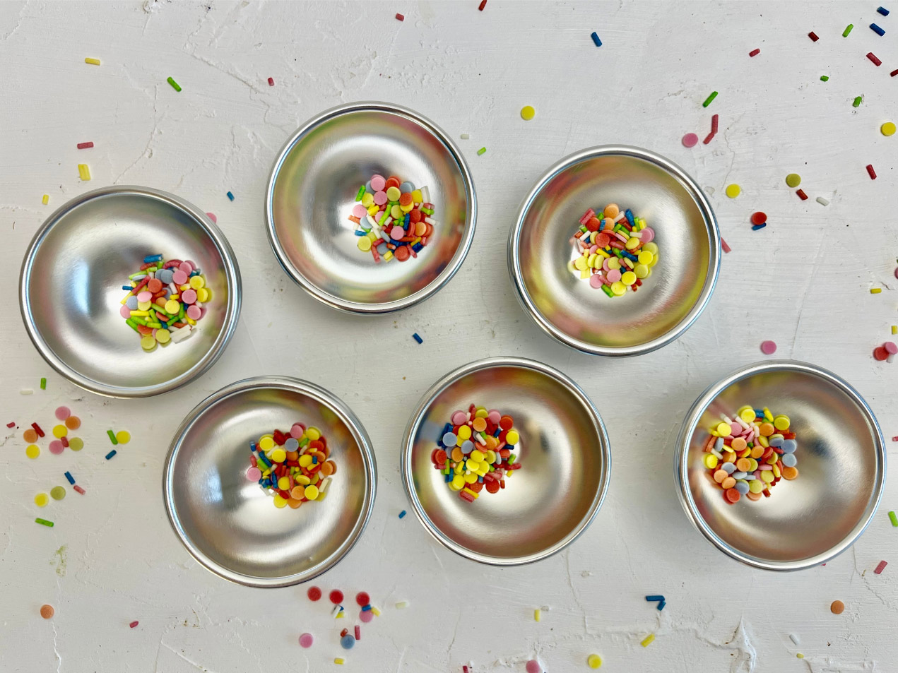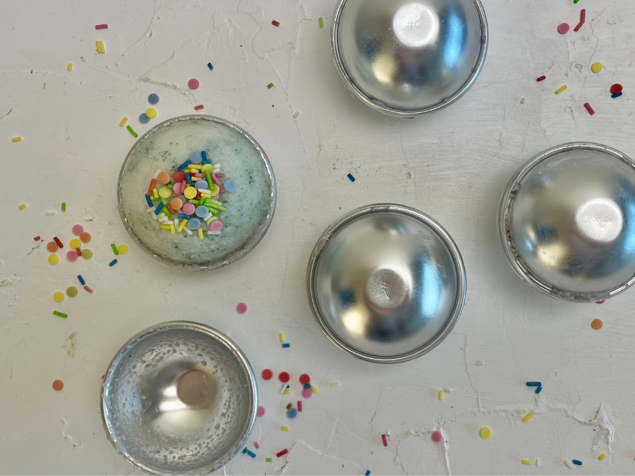 Vorbereitung: Badebombenformen mit bunten Sprinkles befüllen