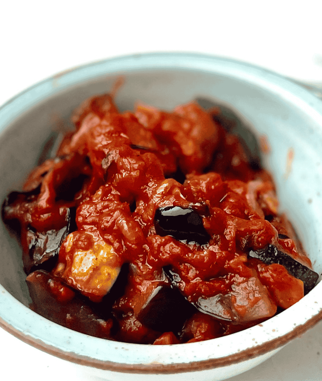 Statt großer Auberginenwürfel kannst du auch kleine Auberginenhälften nehmen.